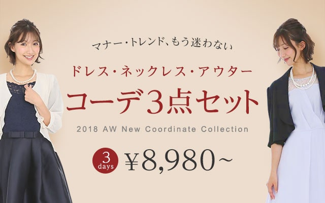 カリルでは、こういった時にスムーズにドレス選びが出来るように、「ドレス+羽織+ネックレス or バッグ」のドレス3点セットが用意されています。